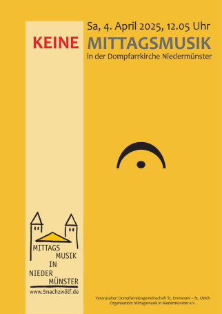 Die Mittagsmusik in der Regensburger Dompfarrkirche Niedermünster lädt jeden Samstag um „5nachzwölf“ bei freiem Eintritt zu einem etwa halbstündigen besinnlichen Konzert ein. Seien Sie herzlich willkommen!